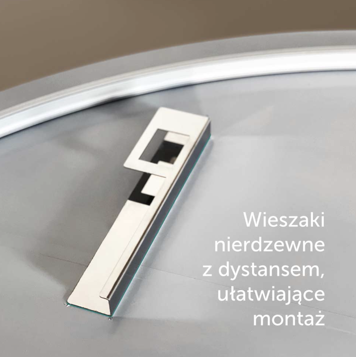 Lustro Amo LED posiada solidne wieszaki, które umożliwiają zawieszenie w pionie lub poziomie.